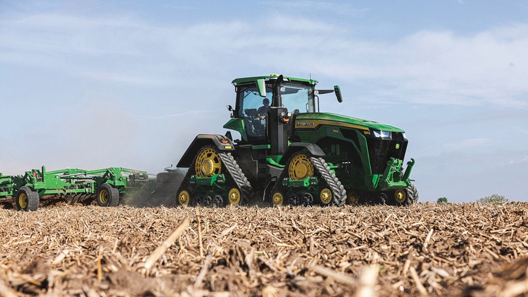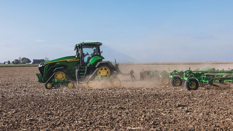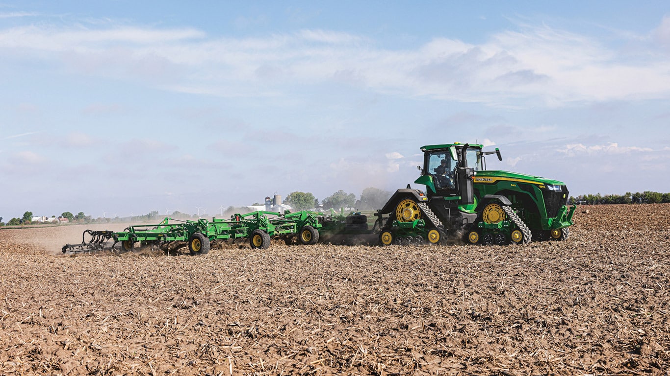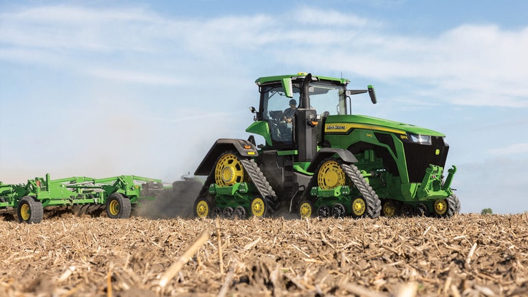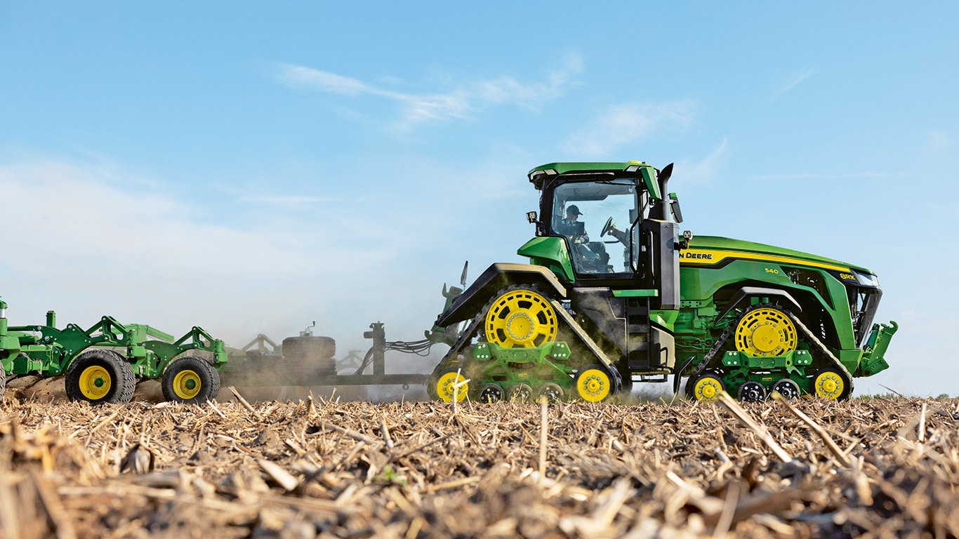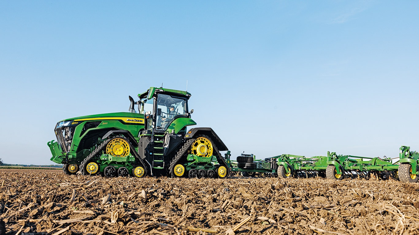 Les nouveaux tracteurs 8R de haute puissance fournissent la puissance de traction dont vous avez besoin pour les équipements les plus exigeants. Avec la gestion intelligente de la puissance de crête, le moteur JD14 fournit jusqu’à 634 ch exactement au moment où vous en avez besoin pour une productivité optimale dans n’importe quelle condition. La transmission eAutoPowr™ unique offre une accélération continue et un transfert de puissance jusqu’à 8 % supérieur par rapport aux transmissions hydrauliques et à variation continue standard.