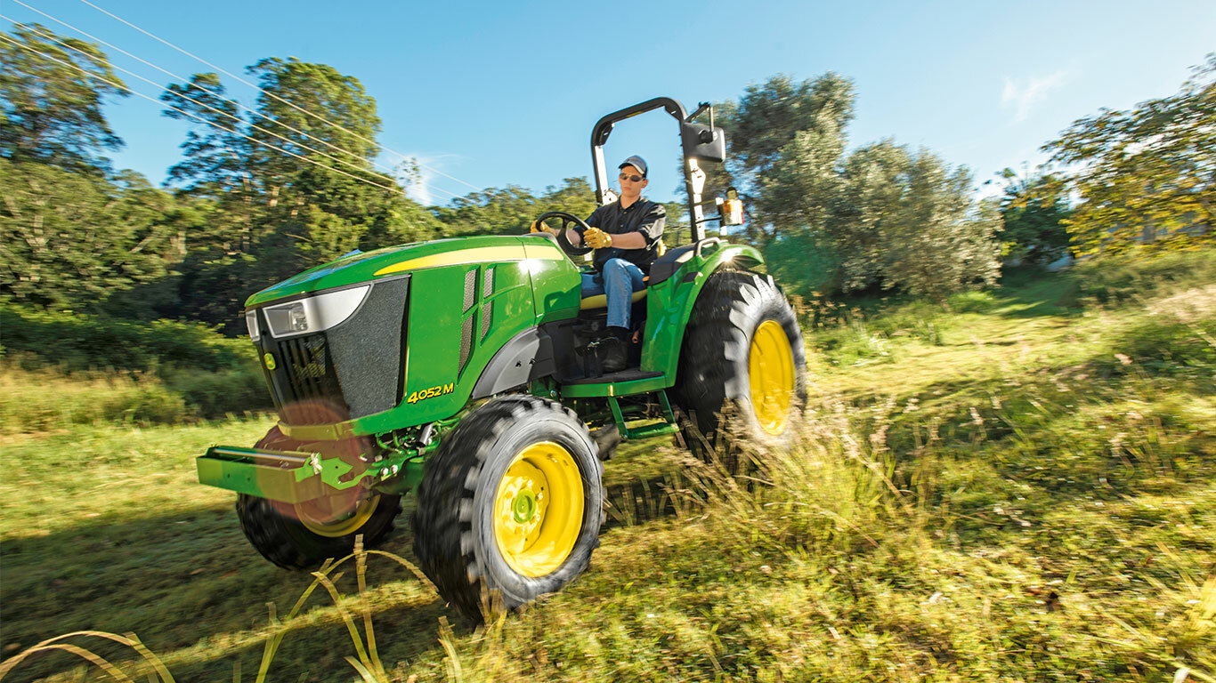De 4052M biedt u het vermogen en de besturing van een volwaardige landbouwtractor. Met een viercilinder-dieselmotor, een eHydro™-transmissie, vierwielaandrijving en een nieuw, intuïtief bedieningspaneel tot uw beschikking, hebt u alles dat nodig is om grote klussen effectief en met gemak aan te pakken.